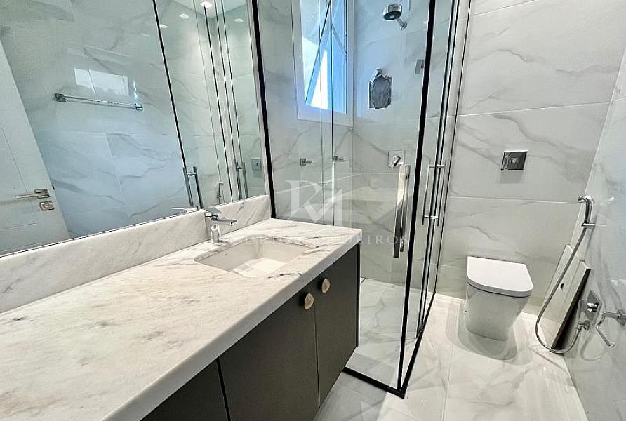 • 4 suítes, sendo uma máster com banheira, closet e vista privilegiada para o mar, além de um escritório ideal para seu home office.