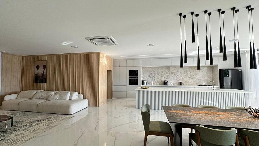 • Amplo living com sala de estar e sala de jantar integradas.