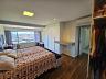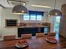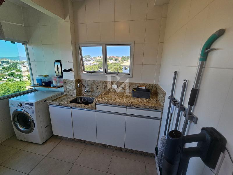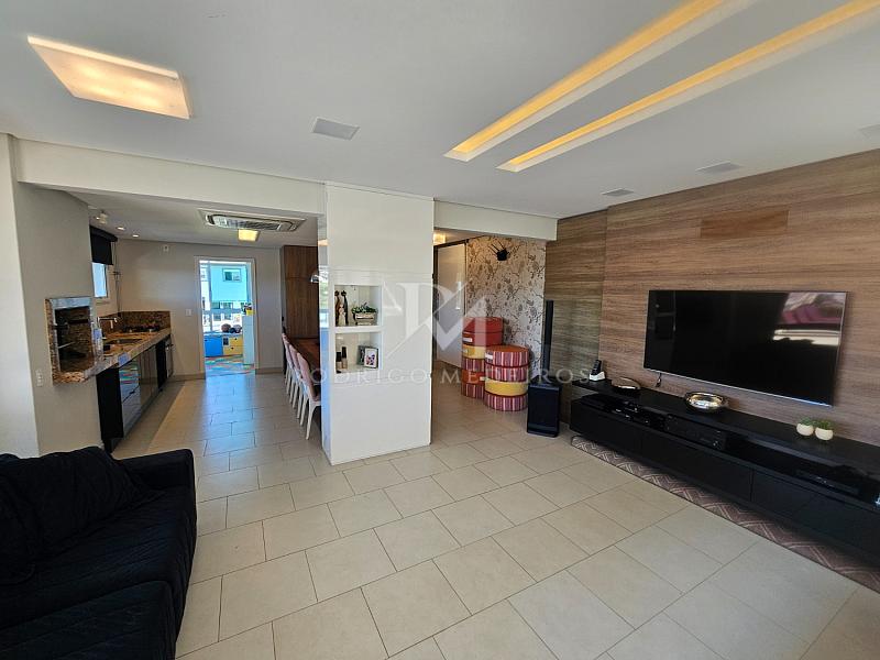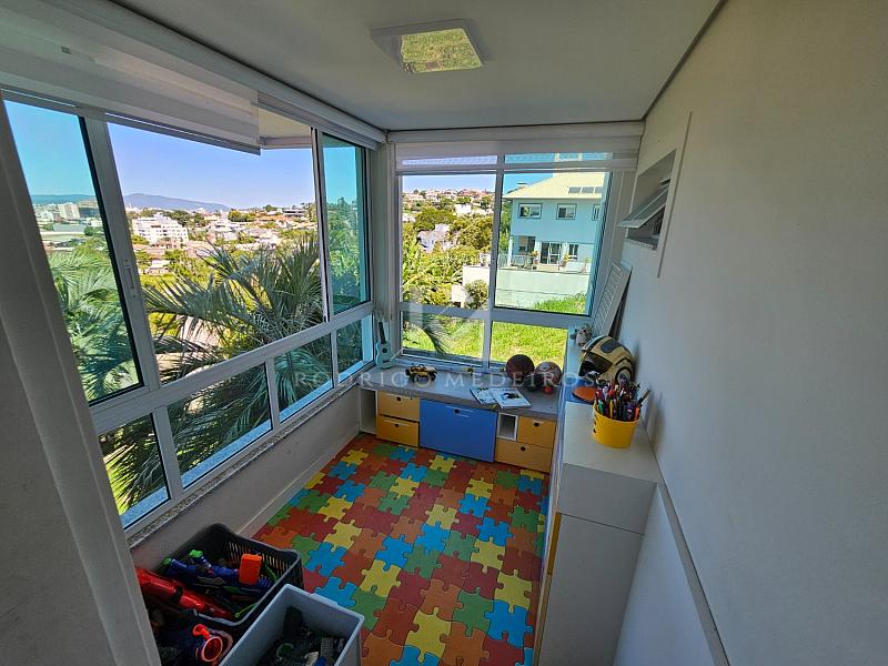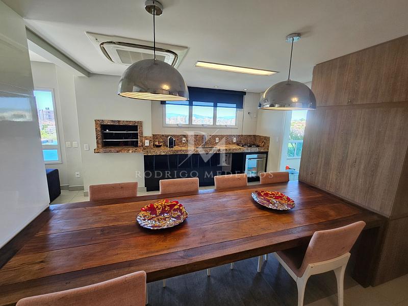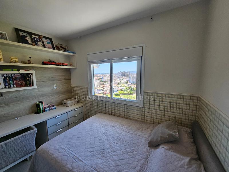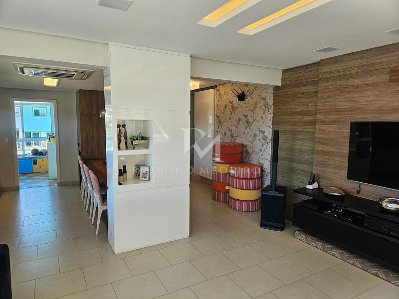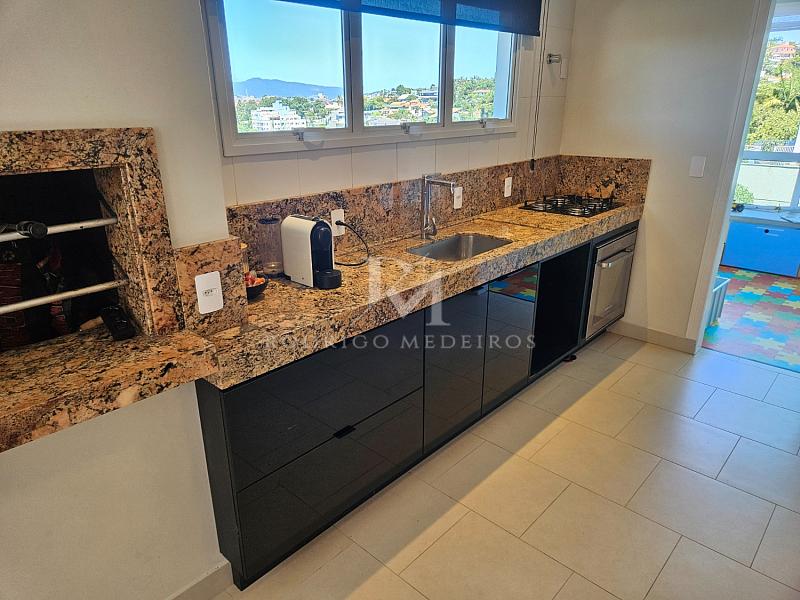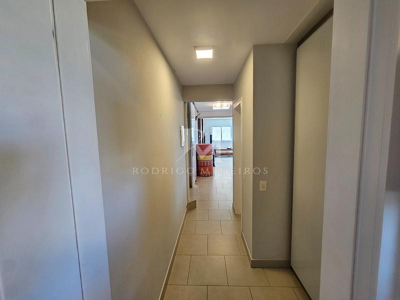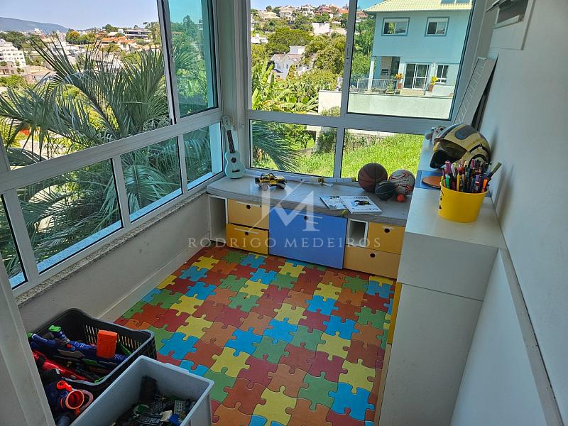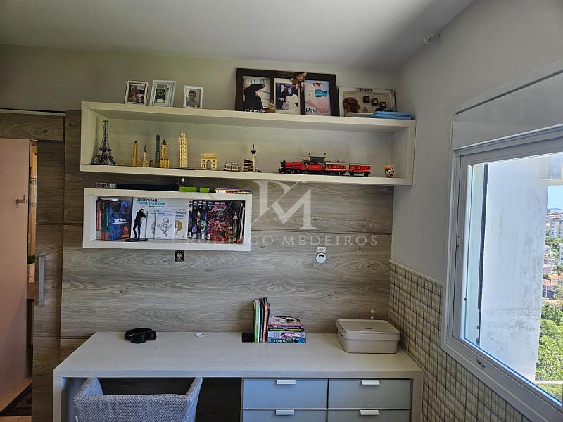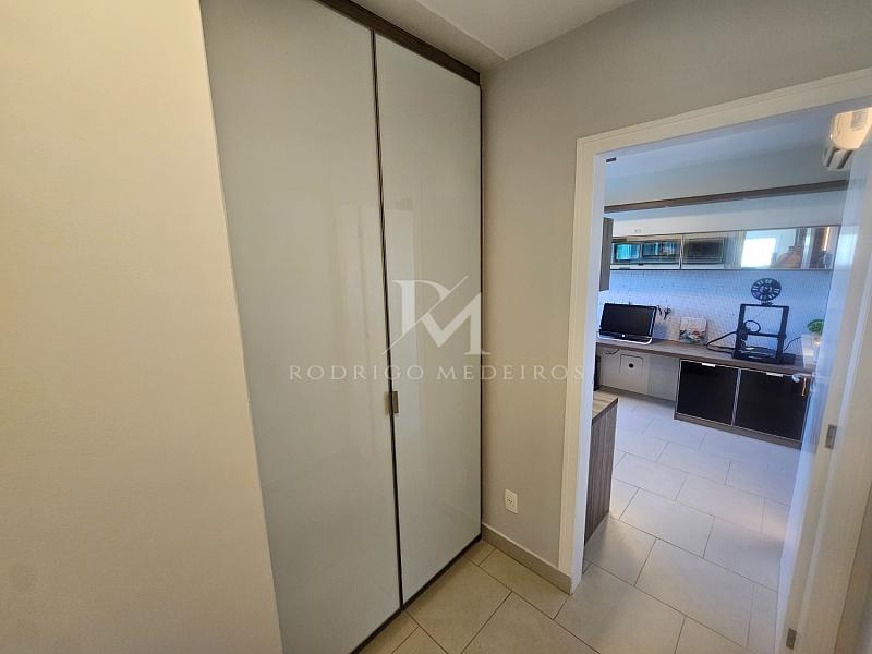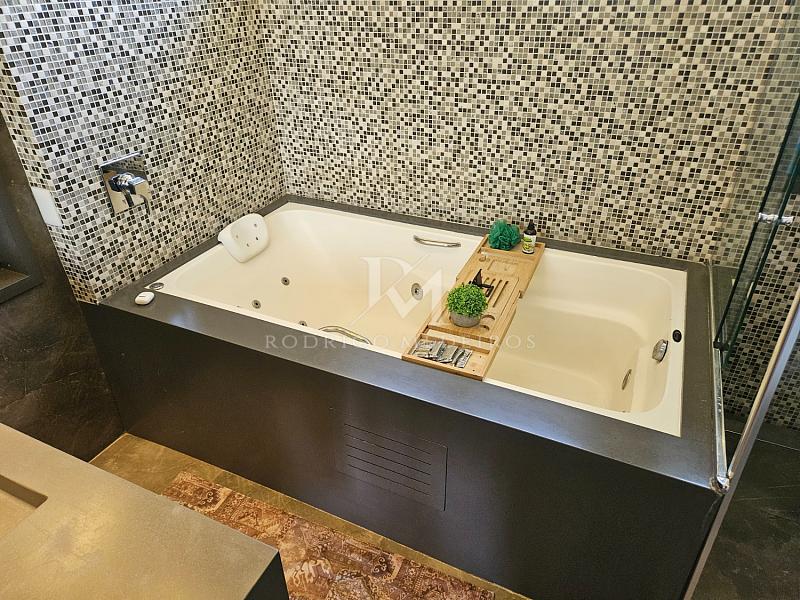 No pavimento superior estão as três suítes, todas amplas, climatizadas e com móveis embutidos de alto padrão. A suíte master conta com closet e banheiro com pia em corian, reforçando o cuidado nos acabamentos. A reforma recente de banheiros e dormitórios atualiza o imóvel e eleva ainda mais seu padrão.