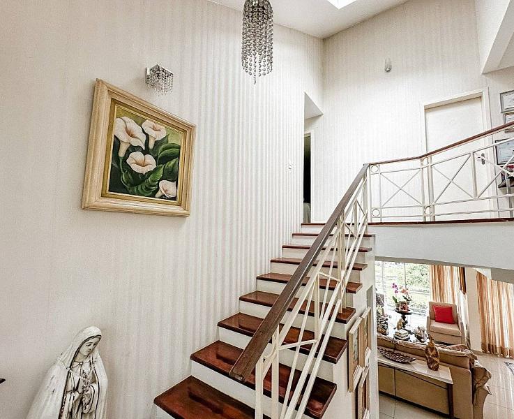 Em um terreno de 847 m², a casa possui 367 m² de área privativa averbada, distribuída em dois pavimentos bem planejados. São quatro suítes amplas, que oferecem conforto e privacidade a todos os moradores. Os ambientes de convívio integram sofisticação e praticidade, criando espaços perfeitos para o dia a dia e para receber com estilo.
