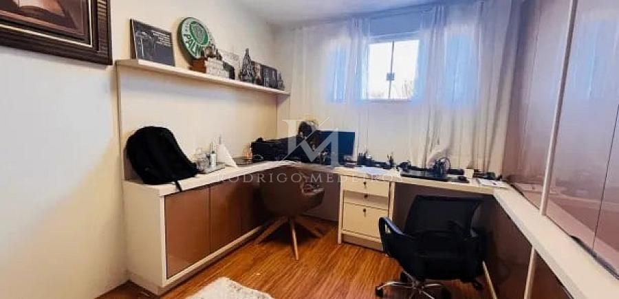 O pavimento íntimo abriga três suítes confortáveis, incluindo uma suíte master com hidromassagem e sala de TV privativa, reforçando a proposta de exclusividade e bem-estar. Uma das suítes está adaptada como sala de TV, podendo ser facilmente revertida, ampliando ainda mais as possibilidades de configuração do imóvel. No último pavimento, um escritório totalmente mobiliado completa a experiência de morar com funcionalidade e privacidade.