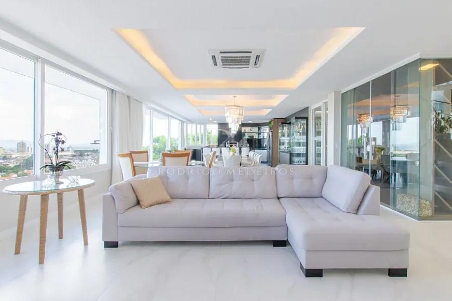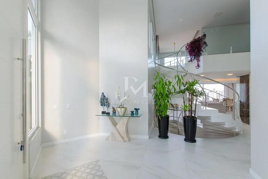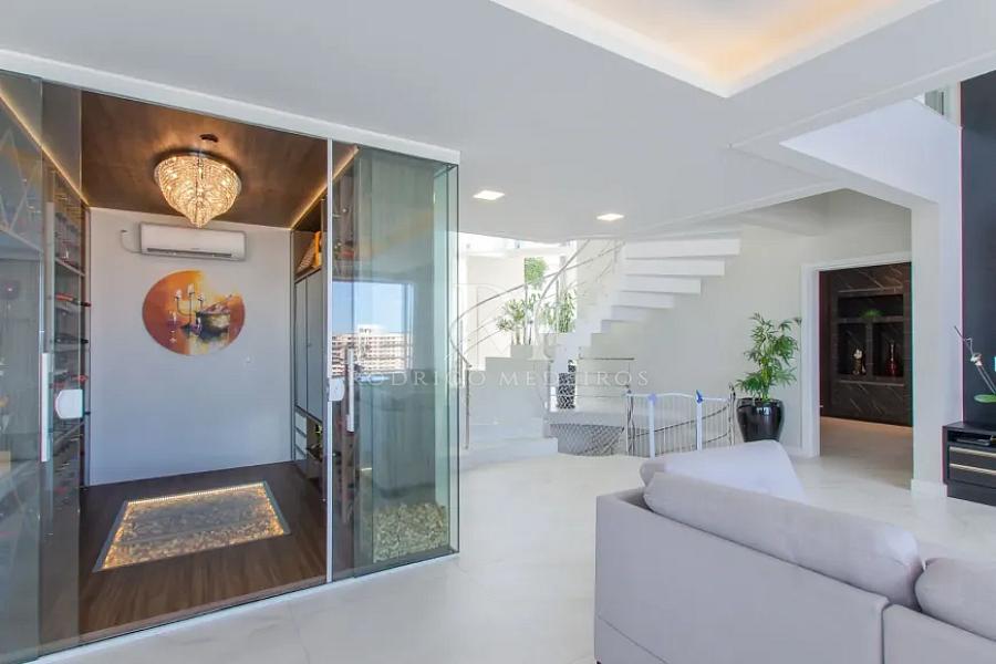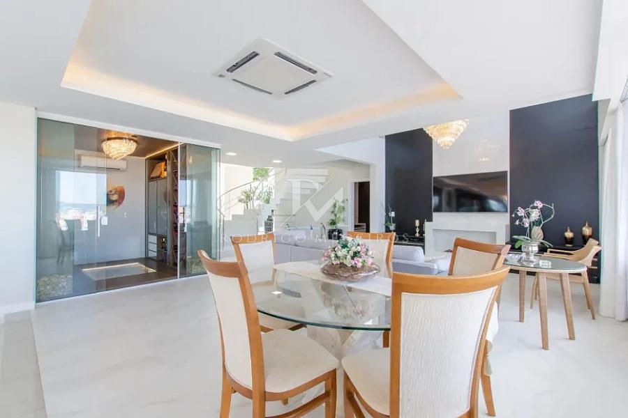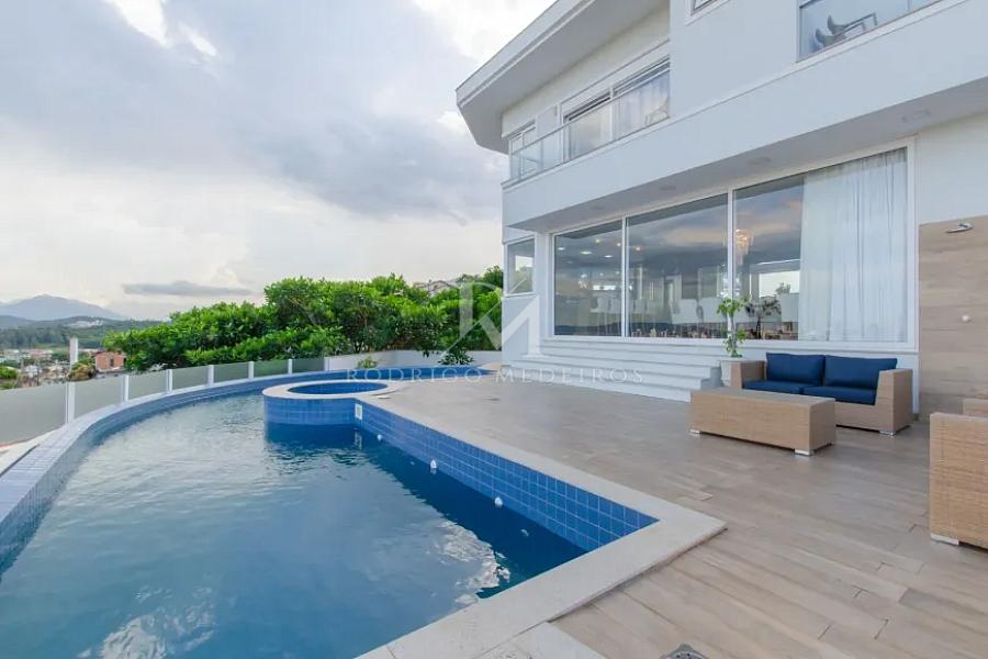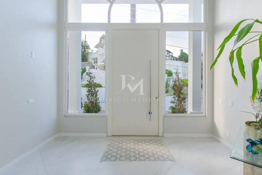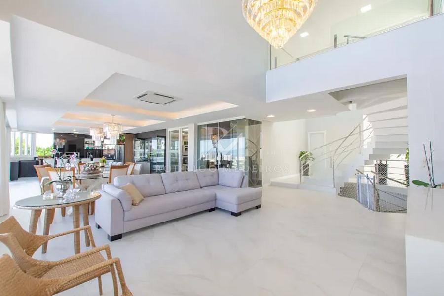 Em uma das localizações mais exclusivas da Grande Florianópolis, esta casa em condomínio no Bosque das Mansões, em São José, une arquitetura sofisticada, paisagismo integrado e uma vista deslumbrante para o mar — cenário perfeito para quem valoriza conforto e elegância.