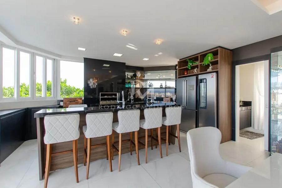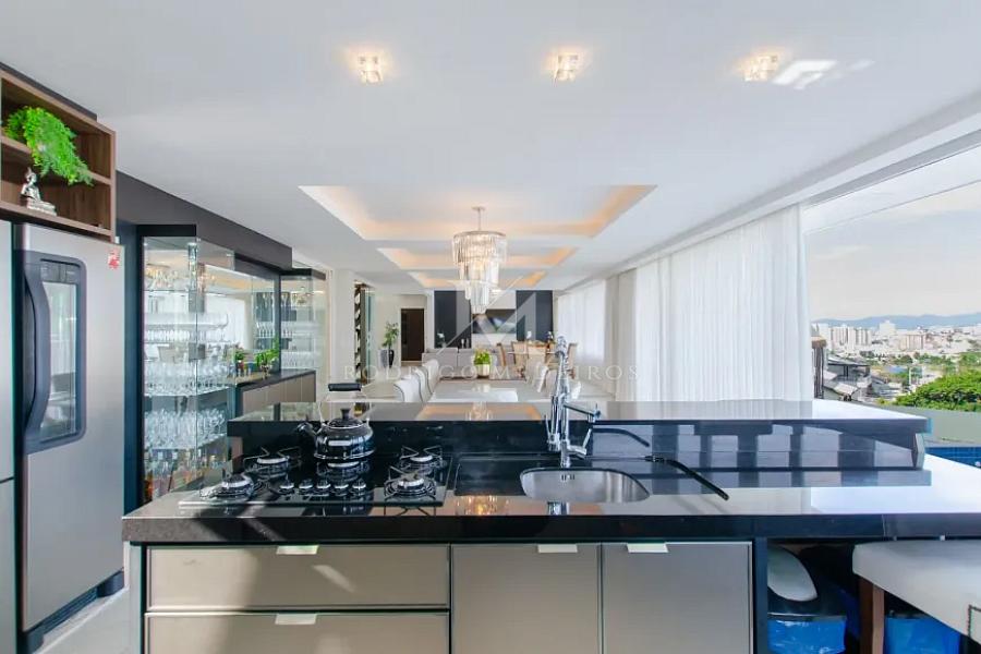 A área externa surpreende com piscina de borda infinita, hidromassagem e um espaçoso deck com vista panorâmica — um convite ao lazer e ao relaxamento em qualquer momento do dia.