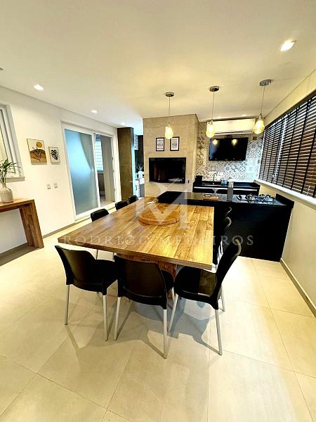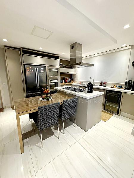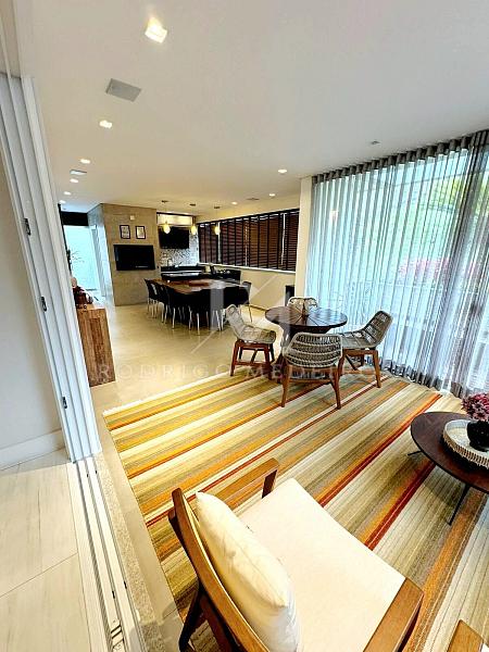O estilo sofisticado se estende ao ambiente gourmet com som ambiente, ideal para confraternizações. A propriedade tem garagem para 5 veículos, garantindo conforto e comodidade no cotidiano.