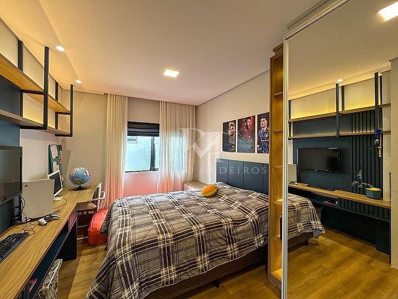 A área íntima conta com quatro dormitórios, sendo uma suíte, oferecendo versatilidade para acomodar a família, visitantes ou até mesmo adaptar ambientes conforme a necessidade. O imóvel também dispõe de um escritório funcional, ideal para quem valoriza um espaço dedicado ao home office.
