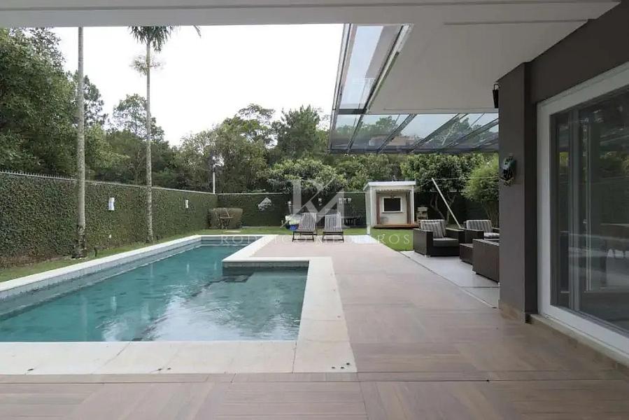 Na área externa, o cenário é ainda mais especial. A residência faz divisa com área de preservação, proporcionando uma atmosfera de tranquilidade e conexão com a natureza. O espaço de lazer foi cuidadosamente planejado, com piscina com raia, jardim amplo e espaço gourmet integrado — ideal para momentos de convivência e experiências memoráveis.