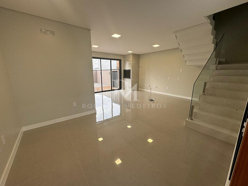 Nos fundos, o amplo terreno oferece liberdade para quem deseja criar um jardim, um espaço gourmet ou simplesmente aproveitar o espaço aberto com privacidade. O acabamento inclui porcelanato classe A (90x90), esperas para ar-condicionado e aquecimento a gás, além de esquadrias com persianas automáticas — detalhes que garantem modernidade e praticidade no dia a dia.