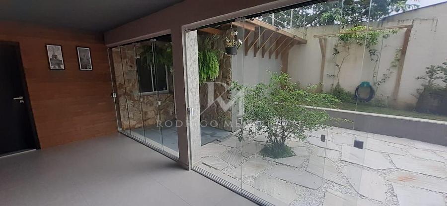 A varanda gourmet, estrategicamente posicionada, integra-se à área de lazer com piscina e churrasqueira, formando um espaço completo para entretenimento e relaxamento. A garagem coberta comporta até três veículos, com espaço descoberto para mais três, oferecendo total comodidade.