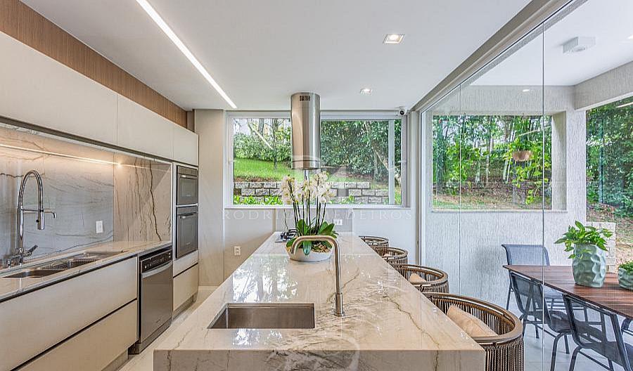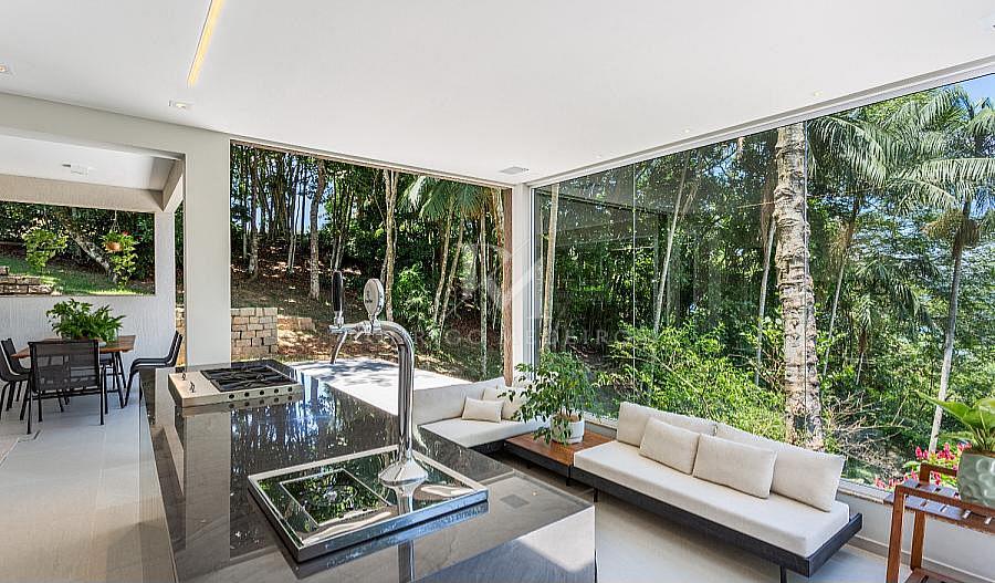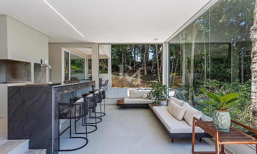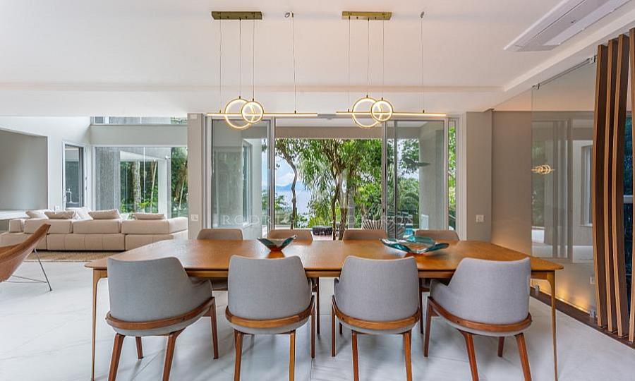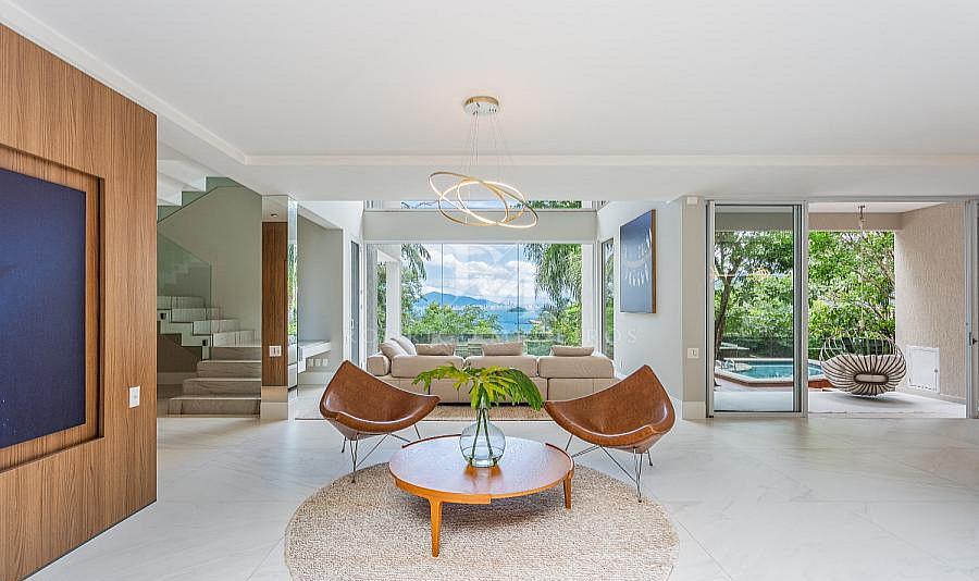 Com um projeto arquitetônico moderno e acabamento refinado, esta casa oferece ambientes espaçosos, com excelente aproveitamento de luz natural e vistas panorâmicas do mar.