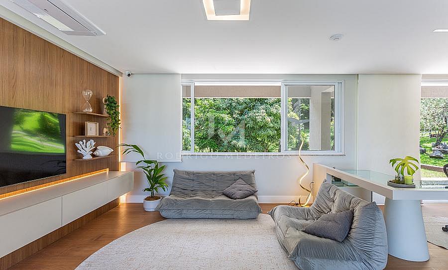 • Móveis planejados e decoração sofisticada.