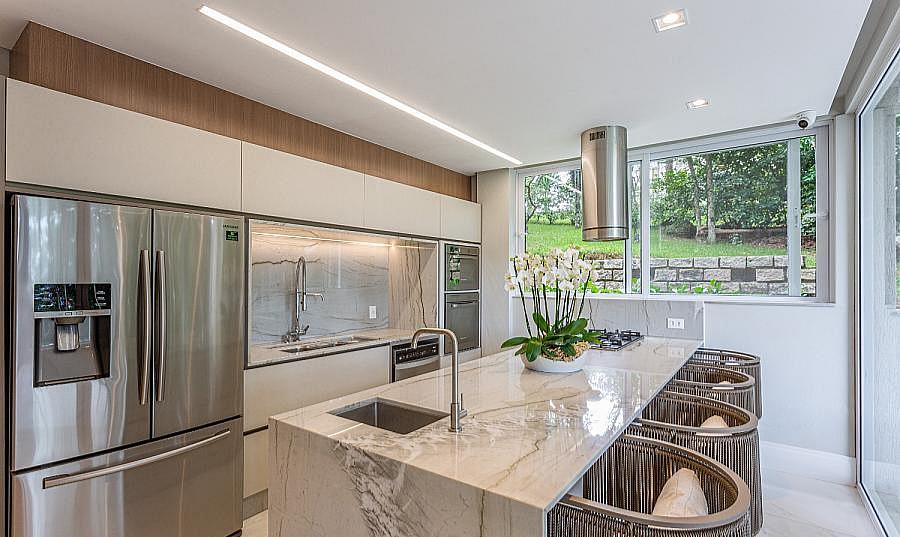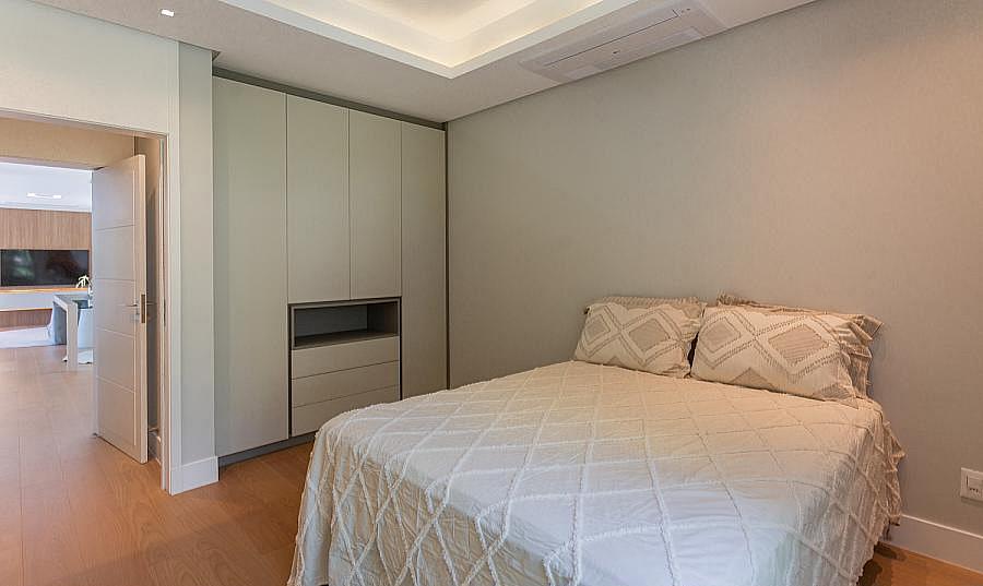 • Móveis planejados e decoração sofisticada.