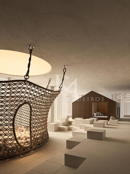 A implantação também contempla lojas e restaurantes no térreo, transformando o empreendimento em um polo ativo e qualificado, sem comprometer a privacidade da área residencial.