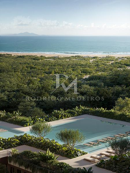 A área residencial foi estrategicamente elevada, garantindo privacidade e vistas privilegiadas. Cerca de 80% das unidades possuem vista para o mar. O lazer ocupa posição protagonista, com piscina elevada a aproximadamente 12 metros do nível da praia e vista panorâmica permanente para o oceano.