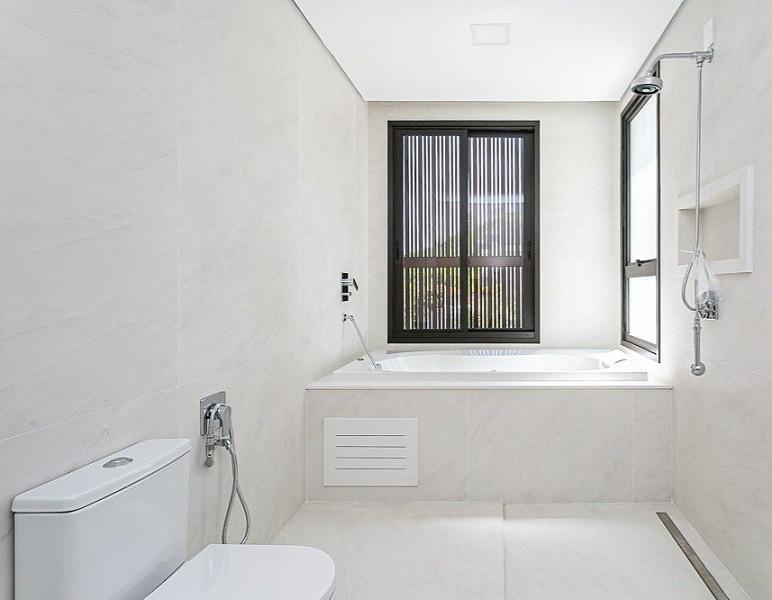 • Acabamentos de alto padrão: porcelanato Portobello, piso vinílico Tarkett, metais Docol, louças Deca e esquadrias de alumínio anodizado