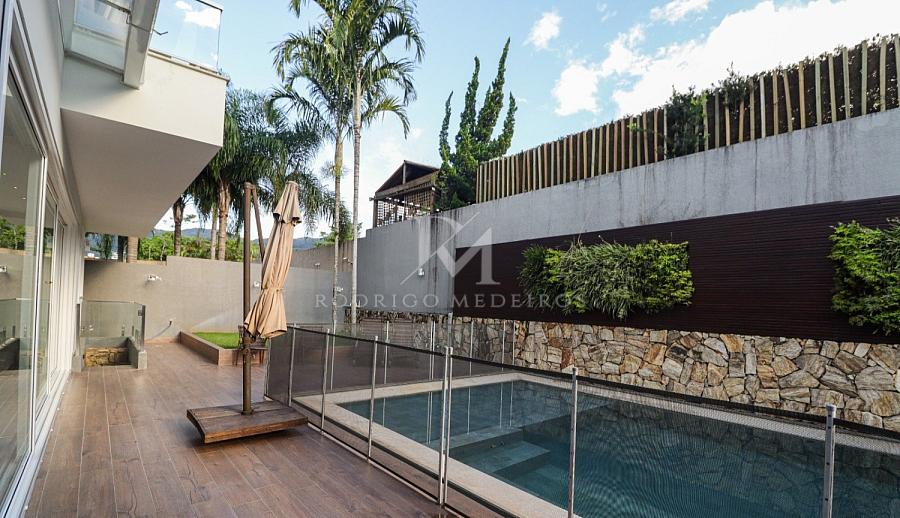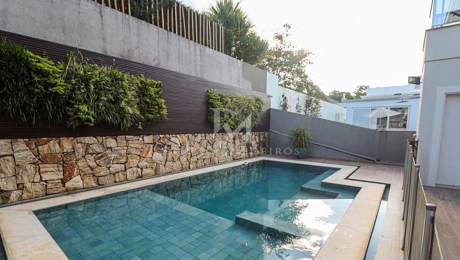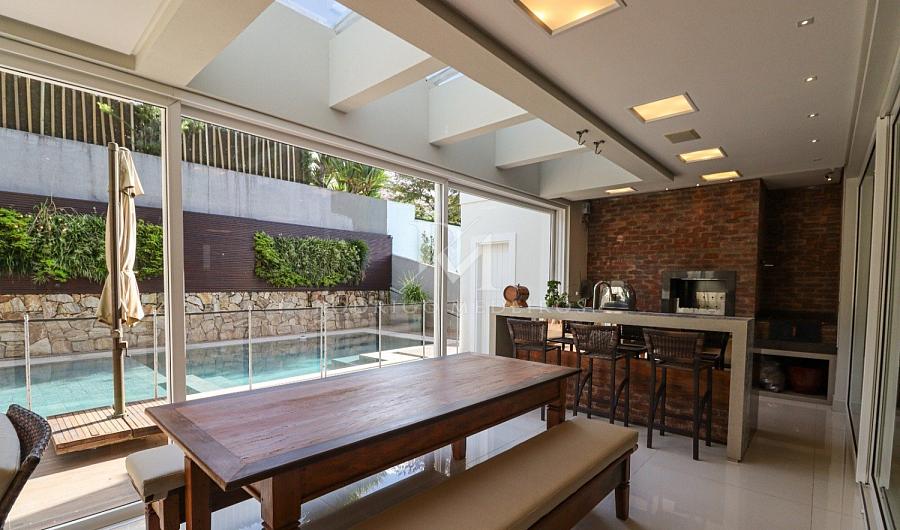 O projeto da casa foi assinado pelo arquiteto renomado Robson Nascimento, que trouxe um visual moderno e sofisticado. A casa possui cozinha planejada, sala de jantar e estar com lareira a lenha, além de um espaço gourmet integrado com churrasqueira a carvão, forno de pizza e fogão a lenha. O ambiente externo conta com piscina aquecida e jardim agradável, além de uma adega subterrânea super charmosa.