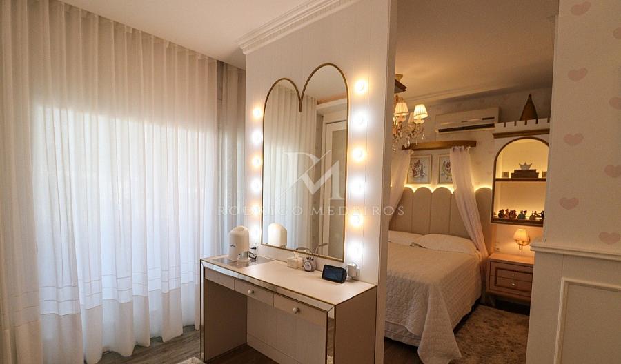 No piso superior, está a suíte master com closet, sacada e uma banheira de relaxamento. Além disso, há outra suíte espaçosa, com sacada, e dois quartos adicionais, ambos com sacadas.