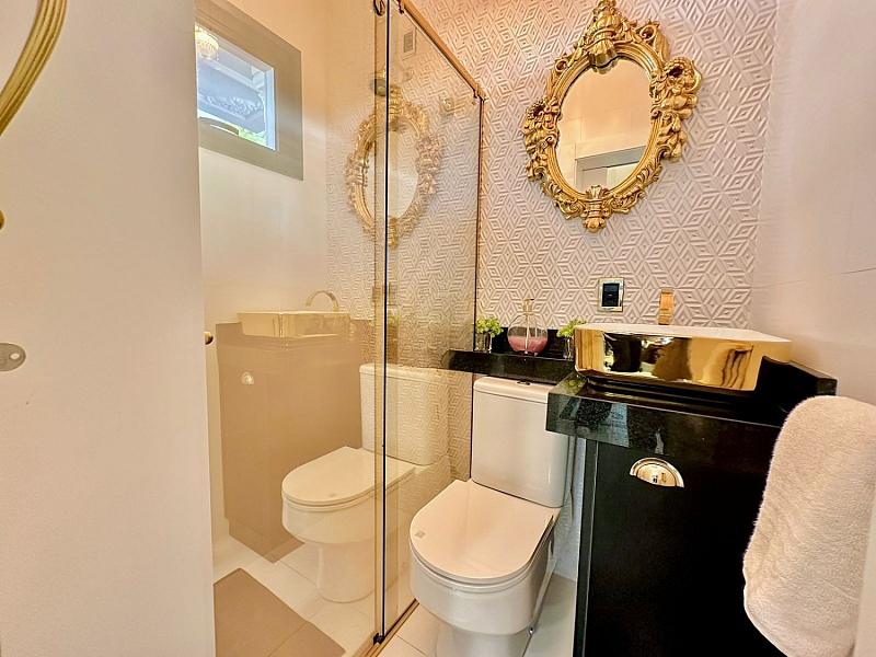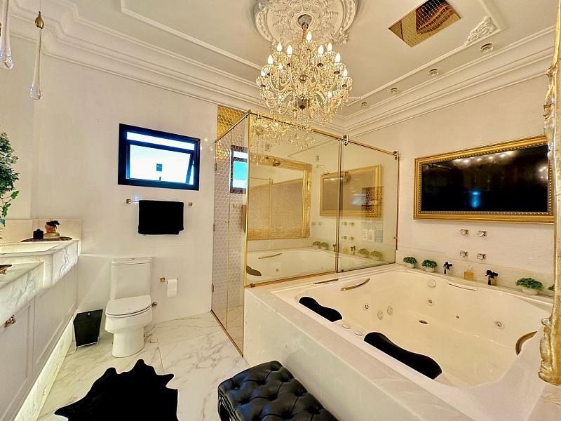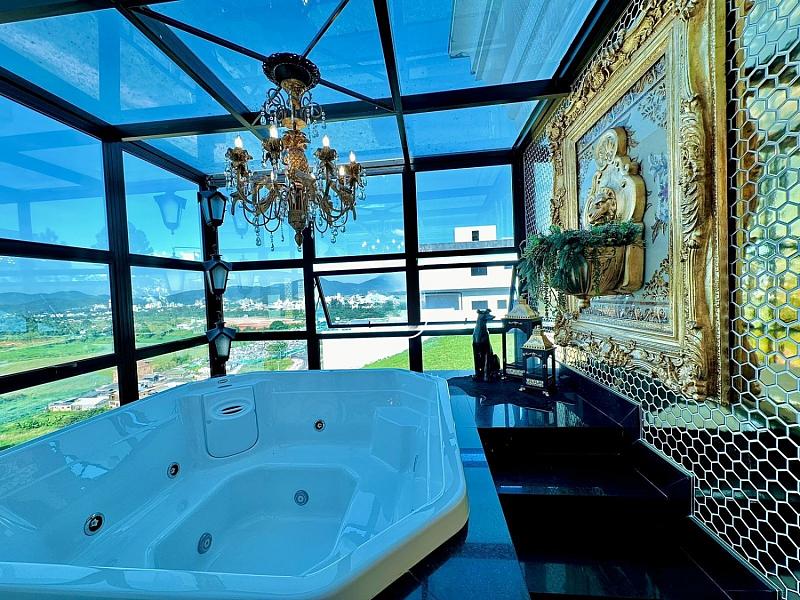 • 03 suítes espaçosas, incluindo uma máster com closet, SPA privativo com vista panorâmica e parede de vidro;