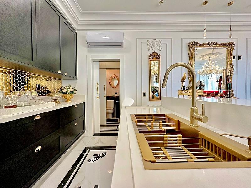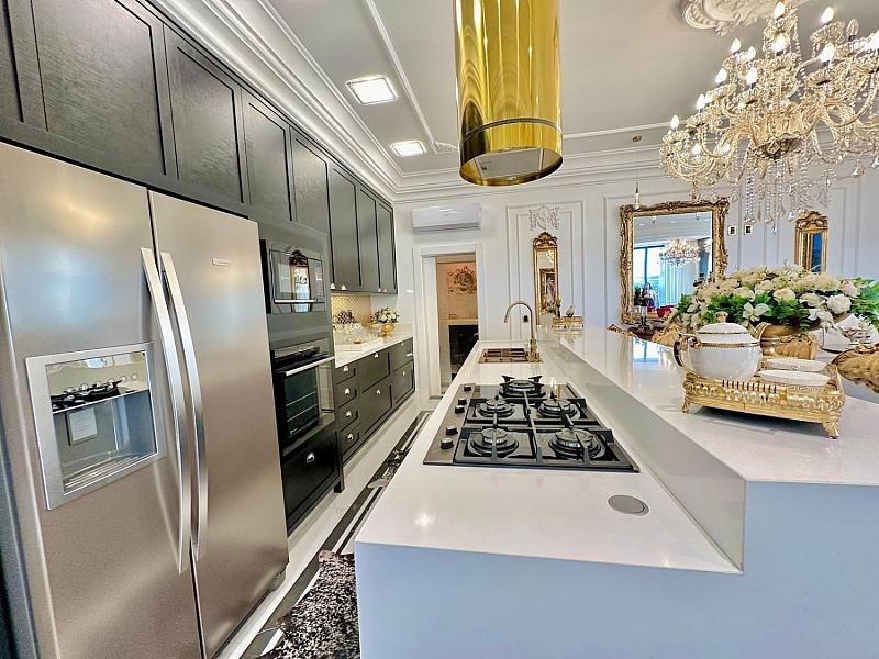 • Cozinha planejada em estilo americano, moderna e funcional;