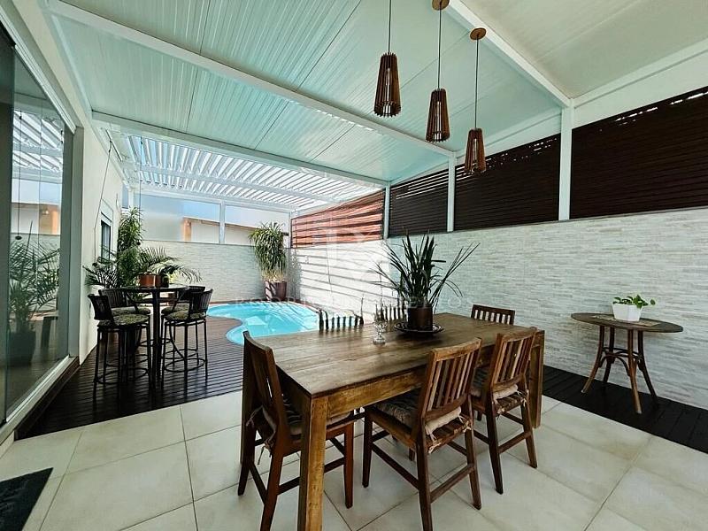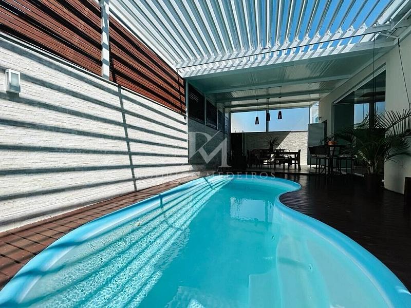 A casa dispõe ainda de uma garagem coberta para dois carros, piscina coberta para uso em qualquer estação do ano e sistema de aquecimento solar, que garante economia e sustentabilidade. Os acabamentos em porcelanato valorizam ainda mais os ambientes, proporcionando elegância e fácil manutenção. O terreno com 360 metros quadrados oferece excelente aproveitamento de espaço e a possibilidade de criar novas áreas de lazer ou jardinagem.