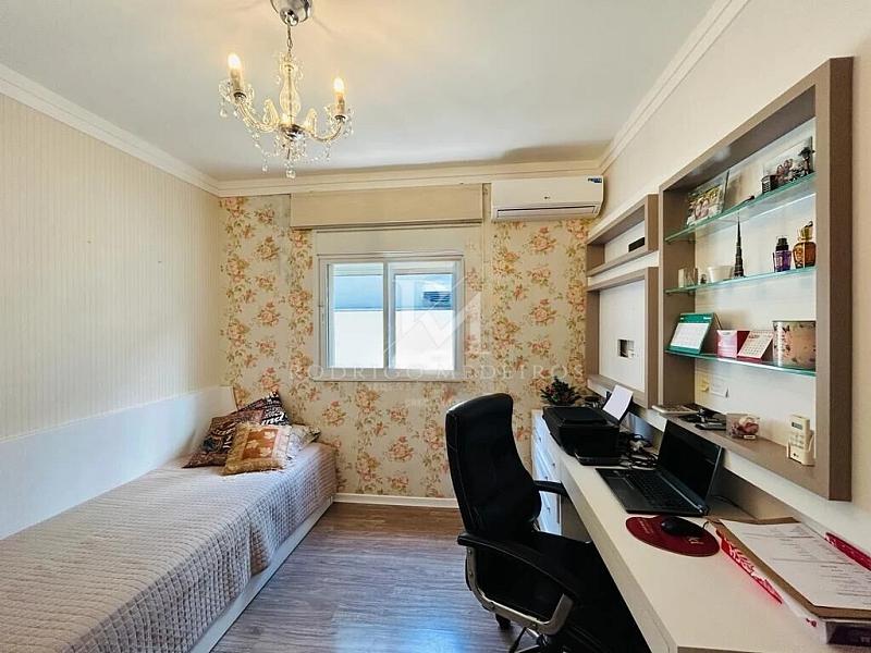 O imóvel conta com três dormitórios, sendo uma suíte espaçosa com closet, perfeita para proporcionar privacidade e comodidade ao casal. A sala de estar e a sala de jantar são integradas, promovendo um ambiente amplo e acolhedor, ideal para momentos em família ou para receber visitas. A cozinha é prática e bem distribuída, conectando-se com um espaço gourmet planejado para quem aprecia cozinhar e confraternizar com conforto.