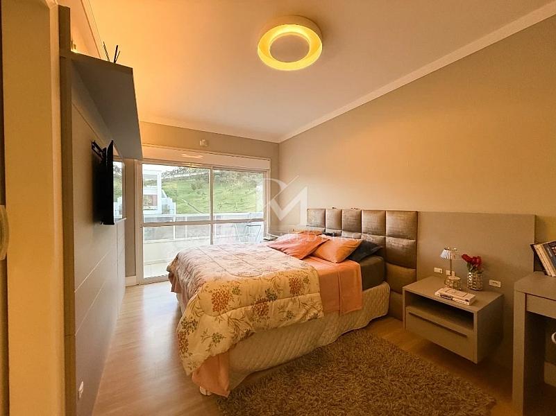 A área social integra espaço gourmet com churrasqueira, cozinha equipada e living aconchegante, perfeito para receber familiares e amigos. A vista para a montanha reforça a sensação de tranquilidade, enquanto o acabamento diferenciado — piso laminado nos quartos e vinílico nos demais ambientes — traz aconchego e sofisticação.