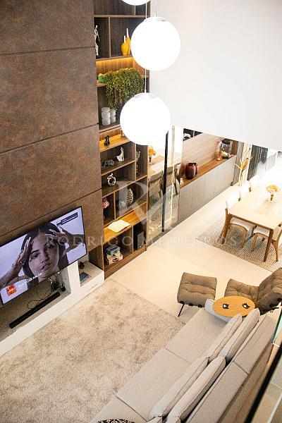 ◦ Sala de estar com lareira a gás e pé direito duplo