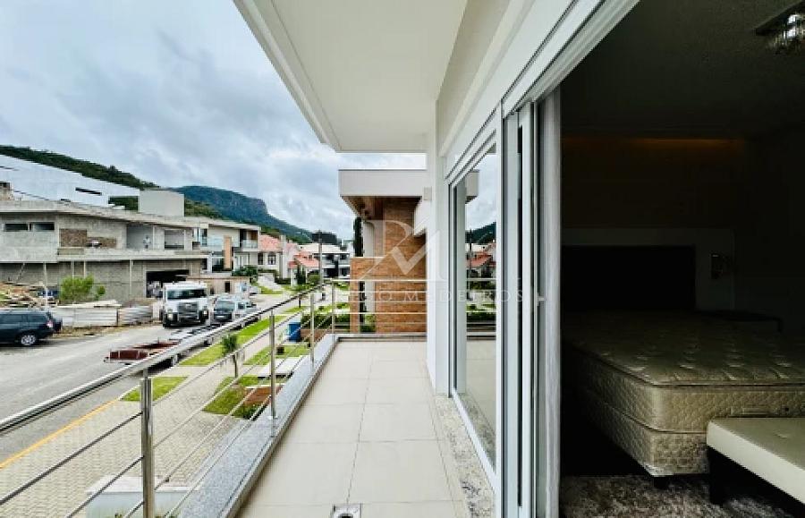 Com 320 m² de área privativa, sendo 248 m² de edificação averbada, a residência apresenta no pavimento superior três suítes amplas, incluindo uma suíte master com closet, banheira e sacada com vista para o morro da Pedra Branca, proporcionando privacidade e uma agradável conexão com a natureza.
