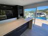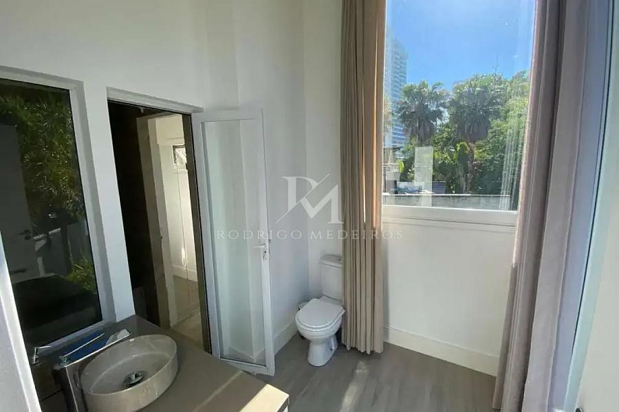 O imóvel conta ainda com elevador panorâmico em vidro, proporcionando uma experiência única ao conectar os pavimentos com vista para o mar. Nos níveis superiores, a vista se torna protagonista, presente em três pavimentos da casa. A área externa contempla um amplo quintal com 210m² de gramado livre, além de terraços que ampliam as possibilidades de uso.