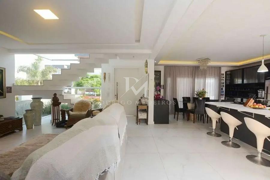 Totalmente mobiliada, a residência foi projetada para valorizar a convivência, com sala de estar, jantar e cozinha em conceito aberto, formando um ambiente fluido e acolhedor. A distribuição dos espaços proporciona praticidade no dia a dia, com excelente aproveitamento de cada ambiente.
