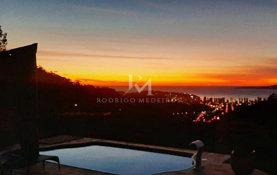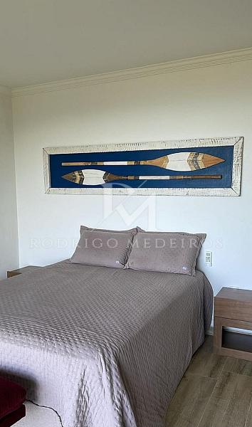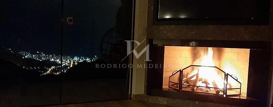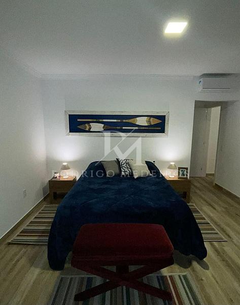 A área social é acolhedora e funcional, com living integrado, lareira, cozinha planejada e varanda com vista definitiva para o mar. A piscina com aquecimento elétrico e a churrasqueira completam o ambiente ideal para relaxar ou receber. Há ainda lavanderia, garagem coberta para três carros e área técnica externa para ferramentas.