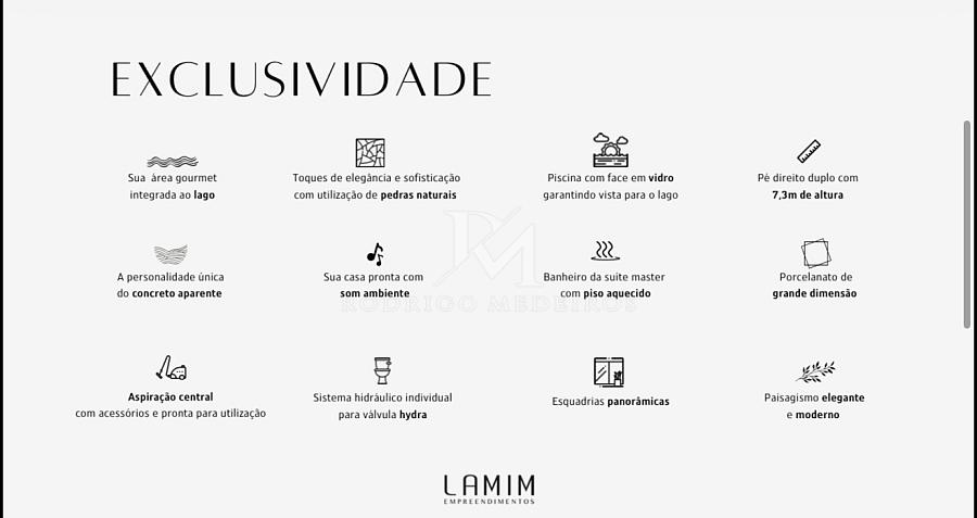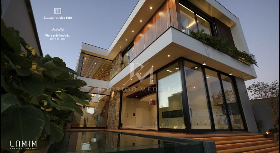 São três suítes amplas, sendo a master um verdadeiro refúgio com banheira, pia dupla e closet espaçoso. As esquadrias panorâmicas piso-teto ampliam a conexão com o exterior, permitindo que a paisagem do lago esteja sempre presente no cotidiano.