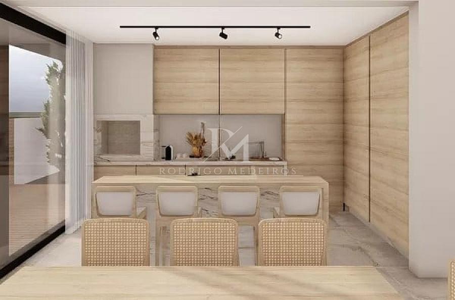 • Ambientes integrados com sala de estar, jantar e cozinha em conceito aberto