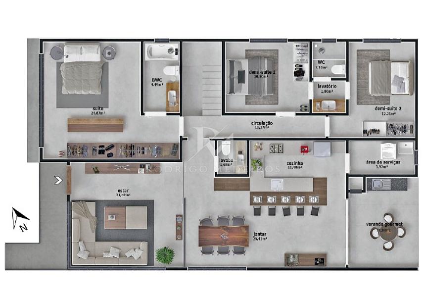 • 3 dormitórios, sendo 1 suíte master e 2 demi-suítes