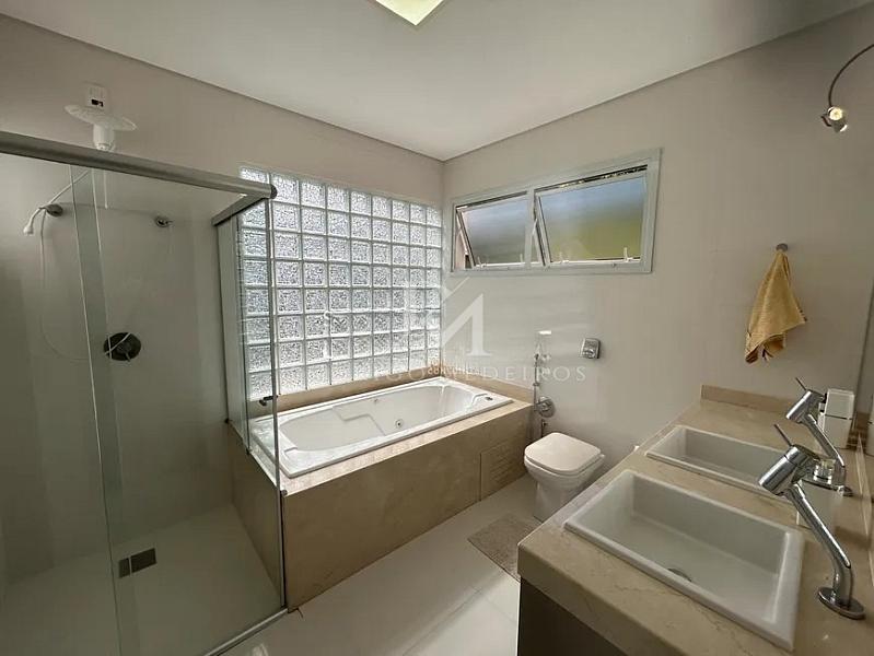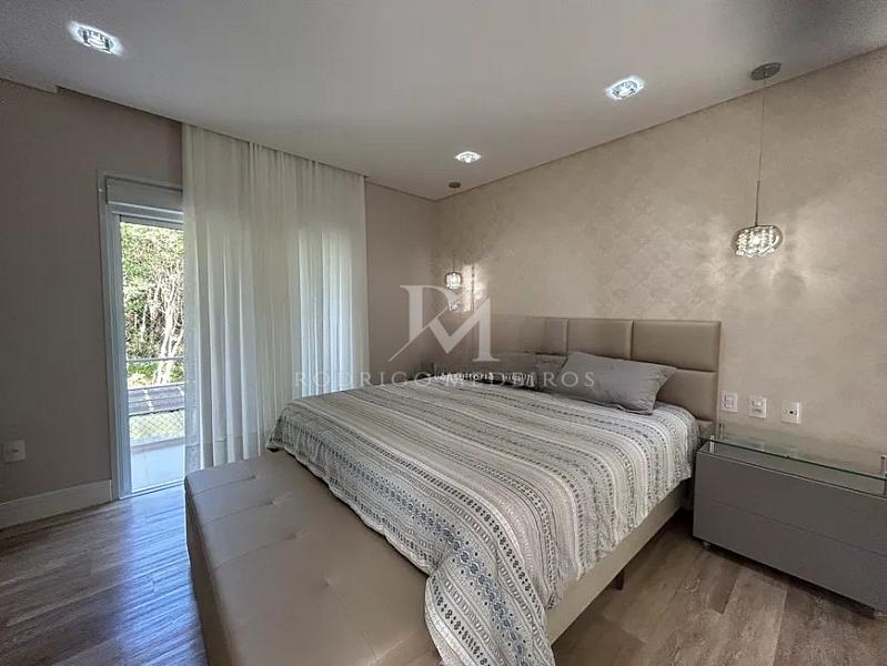 A planta inclui três dormitórios, sendo uma suíte com closet, além de um home office que pode ser facilmente adaptado como uma quarta suíte. A casa conta ainda com lavabo, banheiro de serviço, área de serviço independente e excelente padrão de acabamentos — como escadas em travertino polido, janelas com telas e persianas automatizadas, aberturas em alumínio e climatização nos ambientes.