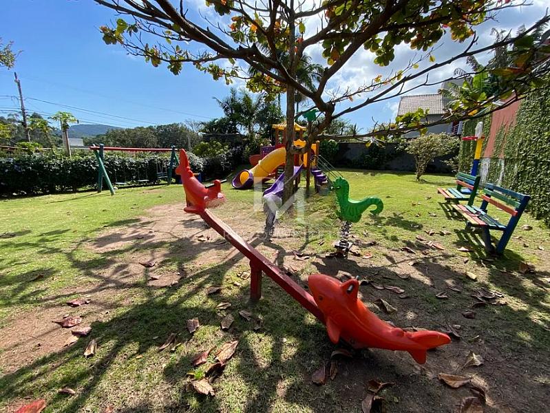 O condomínio oferece infraestrutura completa com portaria 24 horas, playground, horta comunitária, câmeras de segurança e guarita. A localização é estratégica, com acesso facilitado à SC-401, permitindo mobilidade tanto para o centro da cidade quanto para as praias do norte da ilha.