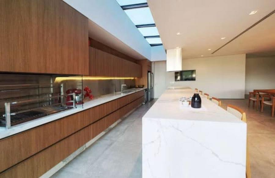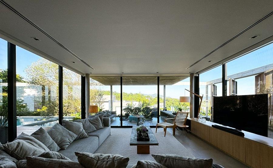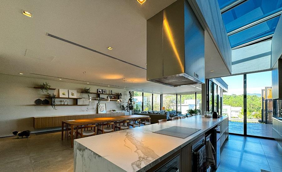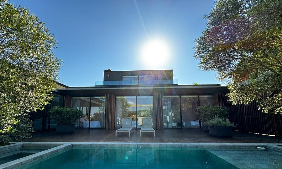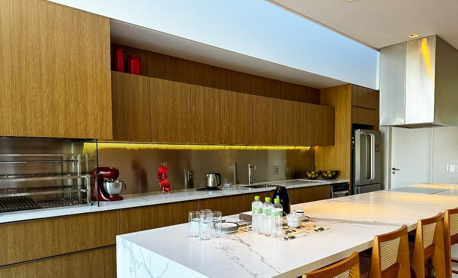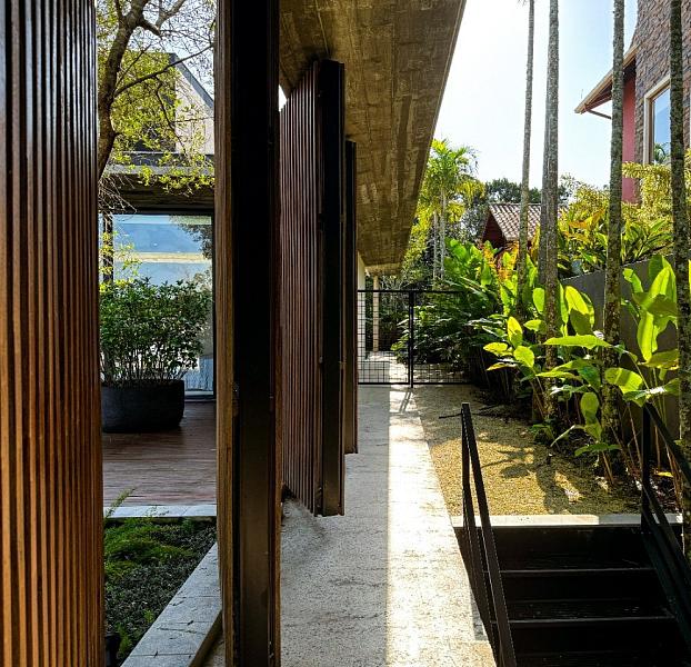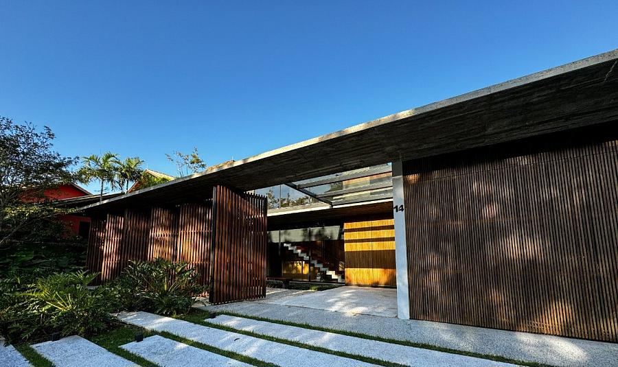 Assinada pelo premiado escritório Marchetti Bonetti Arquitetos Associados, com execução da MVF Construções e paisagismo de Juliana Castro (JA8), a casa foi indicada ao ArchDaily Building of the Year 2020. Com foco na harmonia entre espaço e natureza, o projeto foi orientado para o interior do terreno, privilegiando a contemplação e a fluidez entre os ambientes.