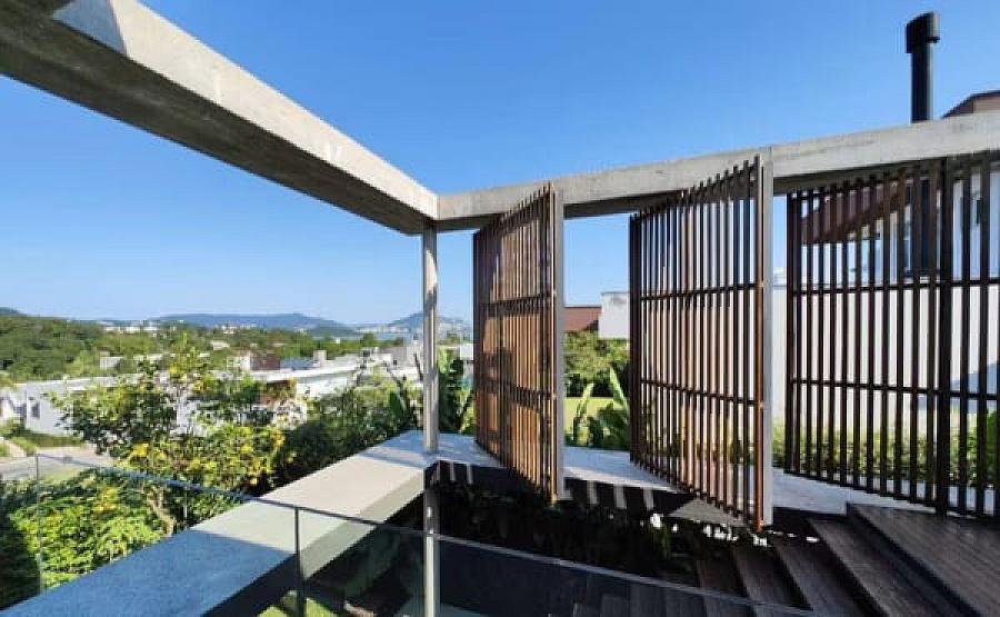 ◦ Painéis móveis de madeira que enquadram a vista