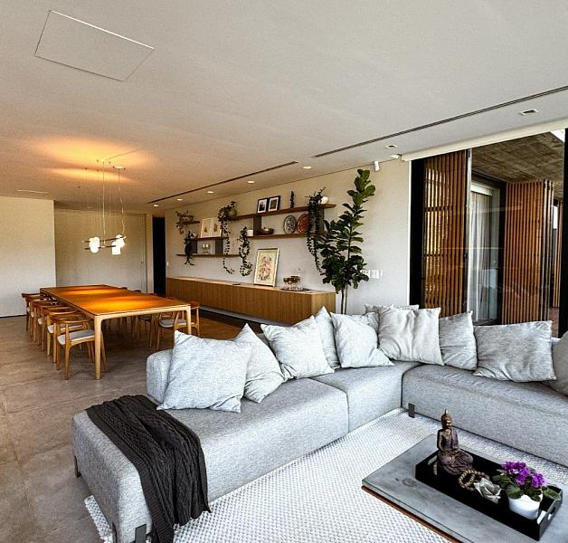A ampla varanda com lareira ao ar livre reforça o conceito da Casa Pátio: uma residência sofisticada, funcional e sensível ao seu entorno. Viva a experiência única de morar em uma casa com reconhecimento arquitetônico, tecnologia integrada e um cenário que muda com a luz do dia.