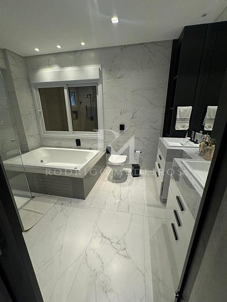 As quatro vagas de garagem oferecem comodidade, enquanto o condomínio fechado garante infraestrutura completa de lazer e segurança, em um ambiente planejado para qualidade de vida.
