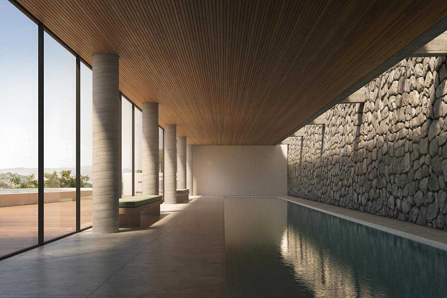 Varanda com piscina, ideal para desfrutar do clima e da vista deslumbrante.