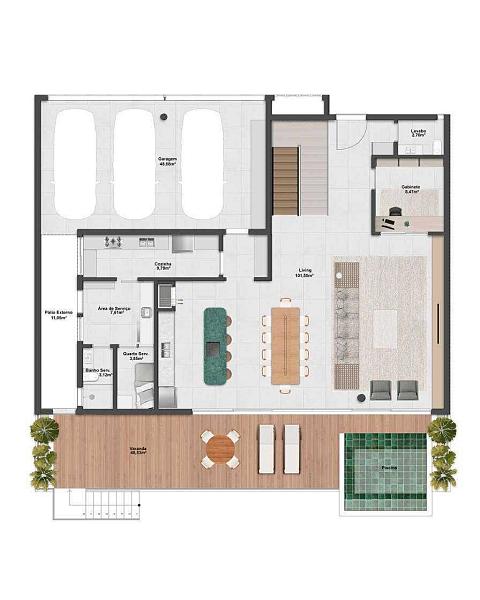 Living integrado, garantindo um ambiente de convivência mais fluido e moderno.