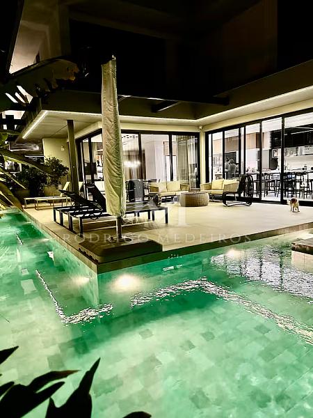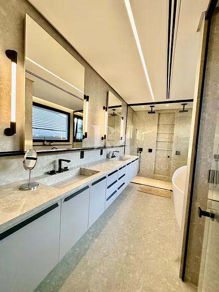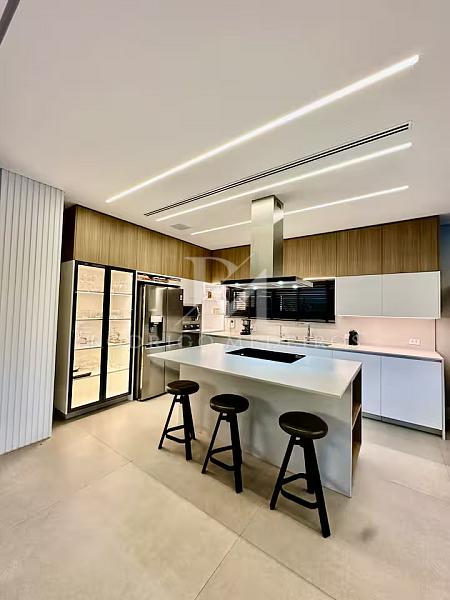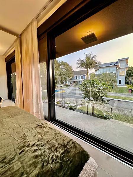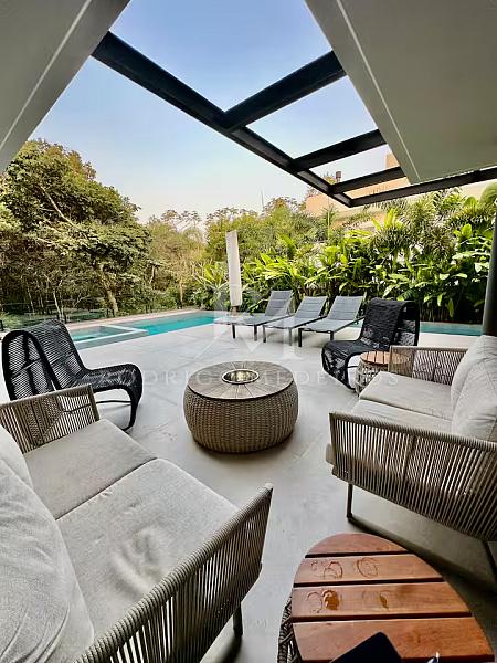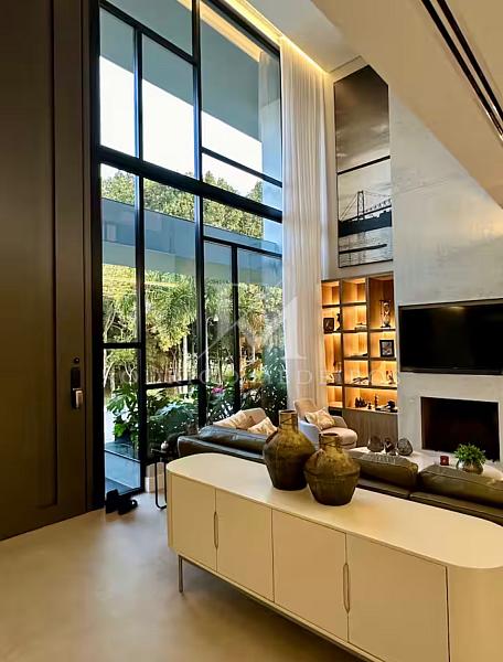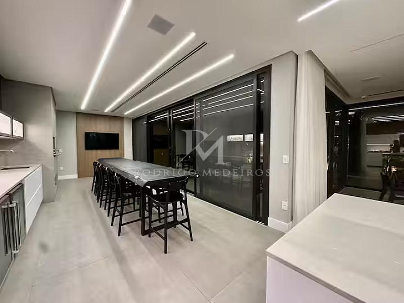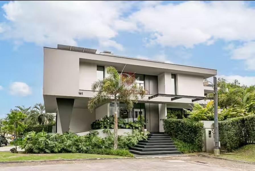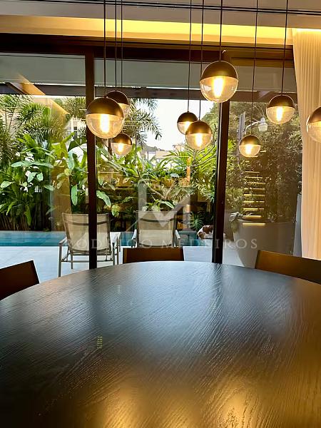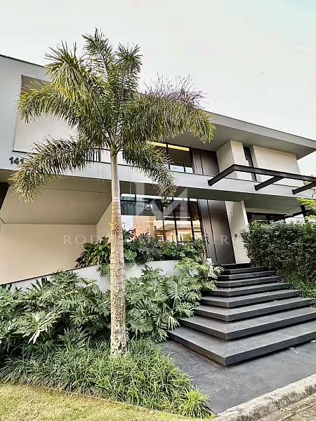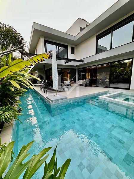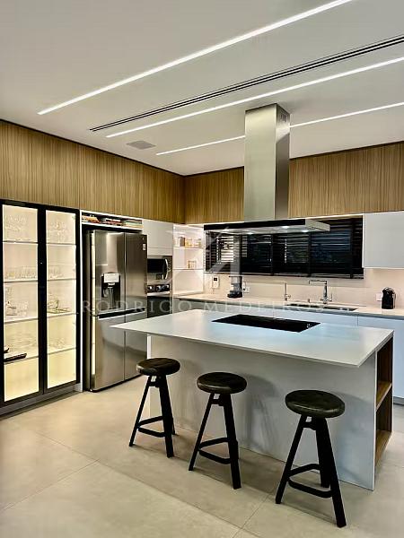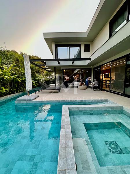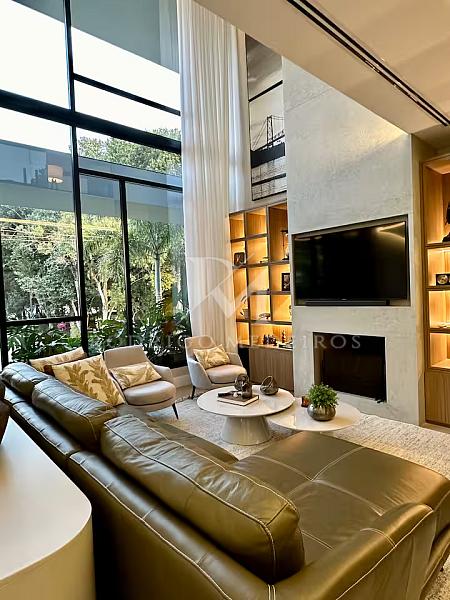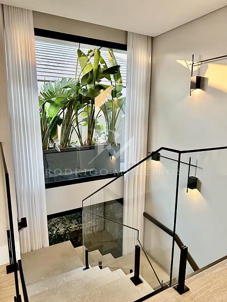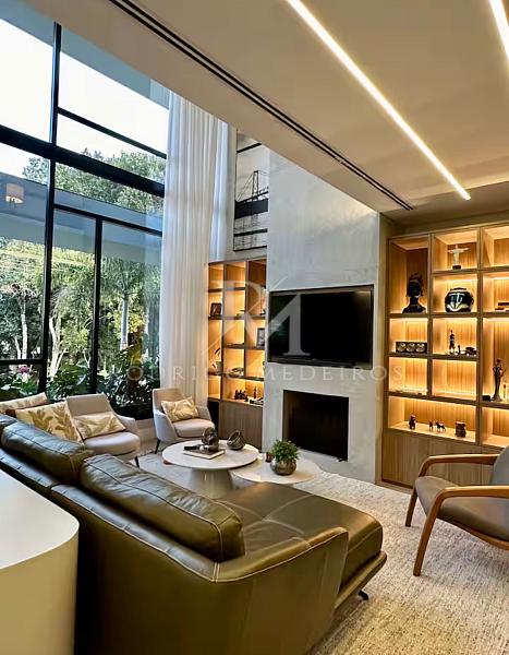 Com 570 m² de área privativa, a residência impressiona pela fluidez dos ambientes e pela arquitetura moderna. Os espaços sociais são amplos, bem iluminados e integrados, criando uma atmosfera elegante e acolhedora. Totalmente mobiliada, a casa apresenta acabamentos de alto nível e uma curadoria de mobiliário que valoriza cada ambiente com sobriedade e bom gosto.
