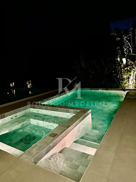 Além disso, o imóvel dispõe de elevador, adega, lareira, escritório, mezanino e ambientes de apoio que tornam o dia a dia mais prático e confortável. A implantação dentro do condomínio valoriza ainda mais a privacidade e a tranquilidade, mantendo fácil acesso às praias, ao comércio local, escolas e aos principais serviços de Jurerê Leste.