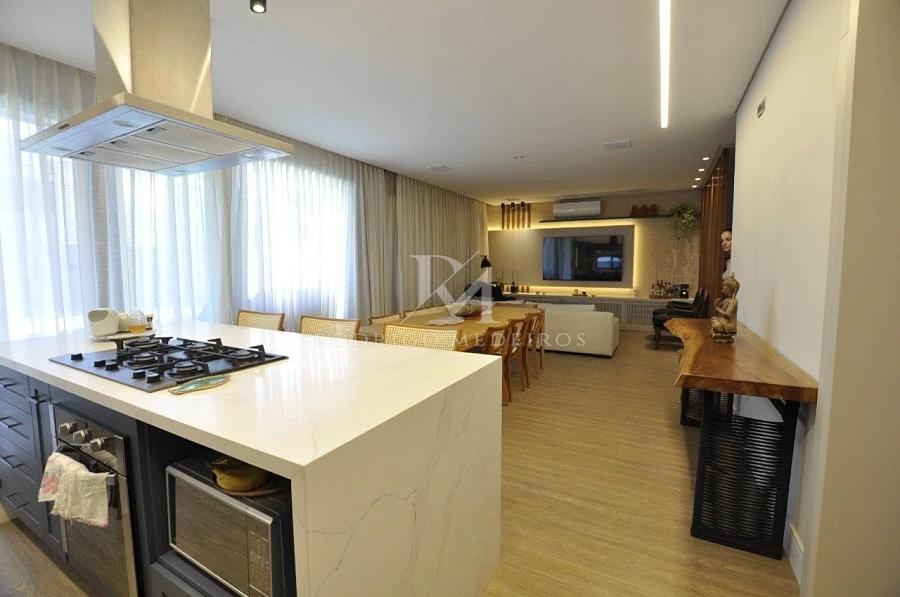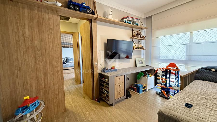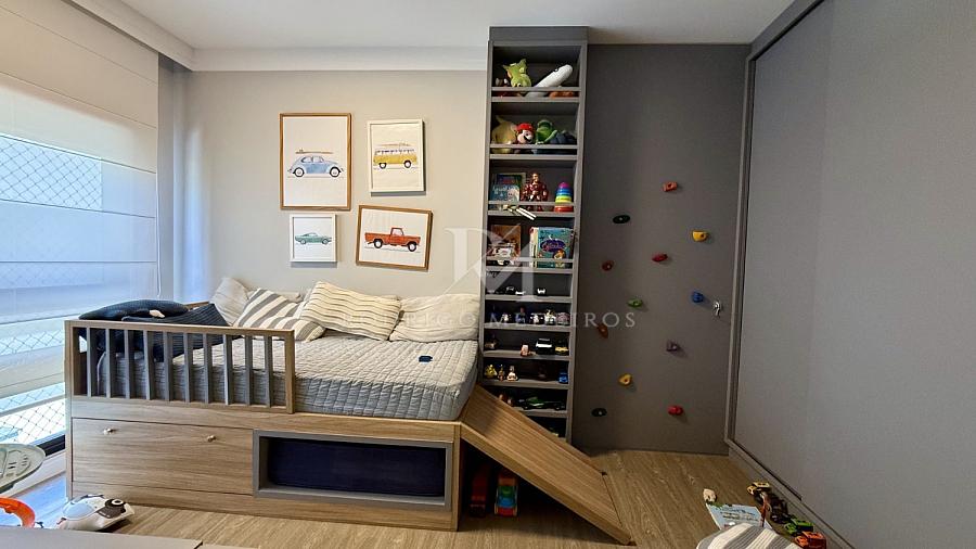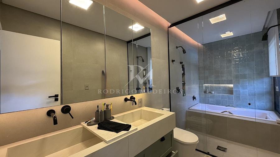 A área íntima contempla três dormitórios, sendo uma suíte master com closet e banheira e duas demi-suítes, garantindo privacidade e excelente distribuição dos espaços.