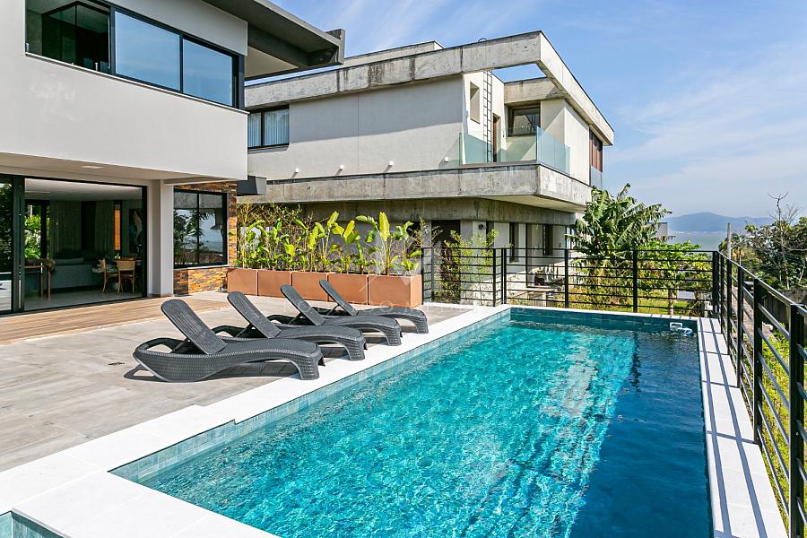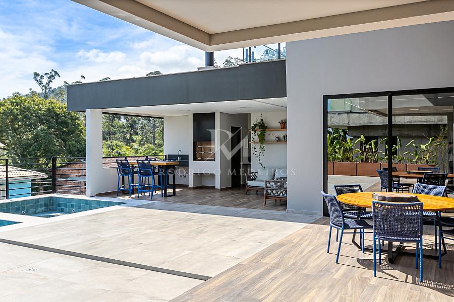 O lazer é outro destaque desta propriedade: uma piscina aquecida com hidromassagem proporciona momentos de relaxamento e bem-estar em todas as estações do ano, tornando-se um verdadeiro refúgio particular.
