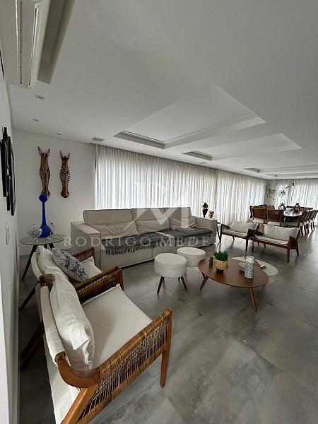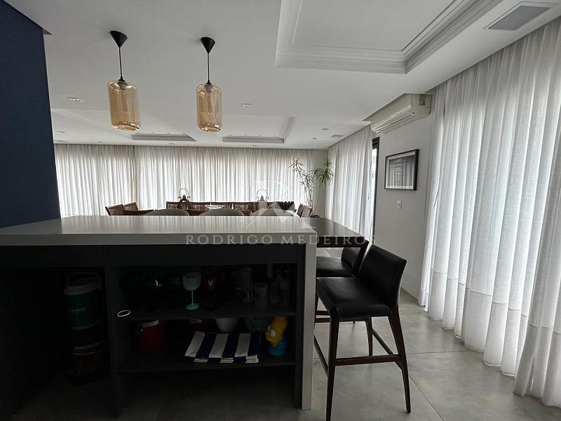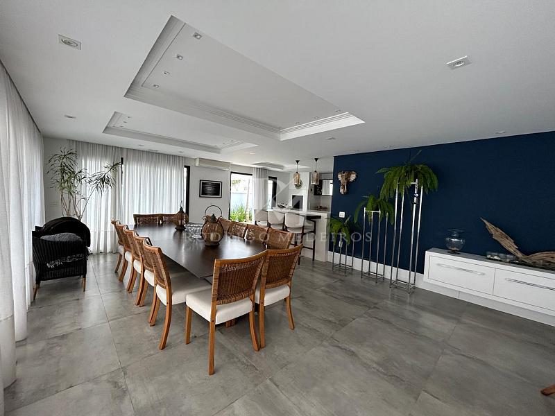 Com 258 m² de área construída, o imóvel foi projetado para integrar os ambientes sociais de forma fluida e elegante. A sala de estar e jantar se conectam harmoniosamente à cozinha, criando um espaço central que favorece o convívio diário e momentos especiais com convidados. A presença da churrasqueira a carvão reforça essa vocação para receber bem, enquanto a área externa com piscina aquecida amplia as possibilidades de uso em todas as estações do ano.