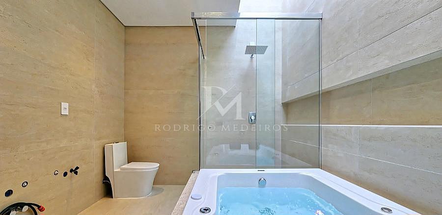 Com 220m² de área privativa, a residência entrega ambientes bem distribuídos, mobiliados e prontos para viver momentos inesquecíveis. São 3 suítes confortáveis, home office, lavabo, dependência completa de empregada e uma área social integrada à piscina, à churrasqueira e à lareira, criando um cenário acolhedor para todas as estações.