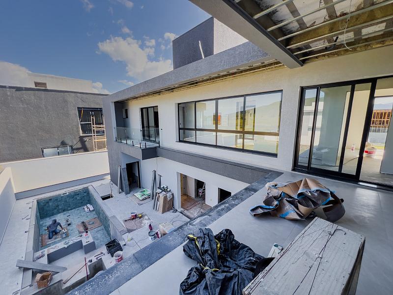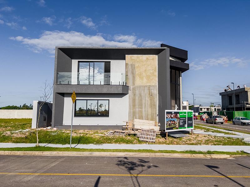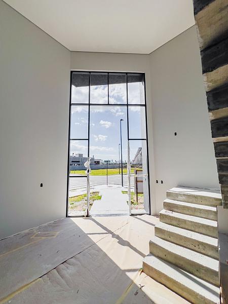 Localizada no maior terreno de esquina da fase 1 do empreendimento (lote Q30 - L06), com 525m², a casa conta com impressionantes 440m² de área construída. Seu pé-direito de 6,5 metros no hall de entrada reforça a imponência e o estilo marcante do projeto. O pavimento térreo acomoda com fluidez a sala de estar, o living e os espaços de convivência, integrando-se à cozinha e à sala de jantar de forma harmônica. No pavimento superior, encontram-se quatro suítes bem distribuídas, proporcionando conforto e privacidade para toda a família.