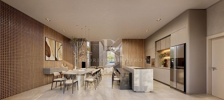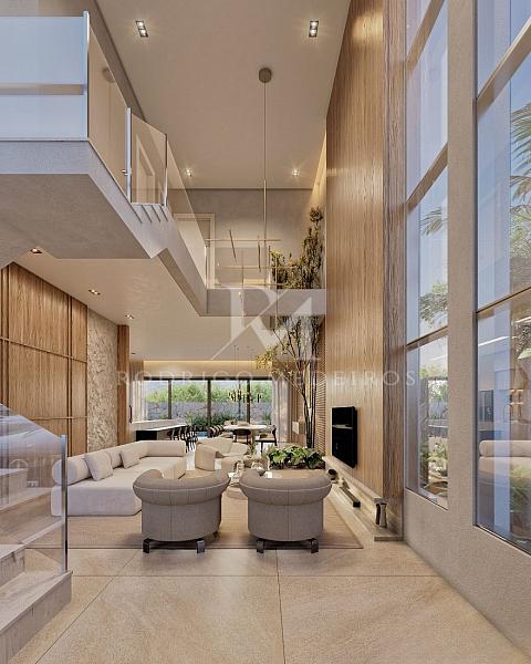 Com 360m² de área construída, a residência possui planta ampla e bem distribuída, com quatro suítes, incluindo uma suíte master com hidromassagem, garantindo conforto e privacidade para toda a família. Os ambientes sociais foram projetados em conceito integrado, com living espaçoso, sala de estar, sala de jantar e cozinha conectadas, criando uma atmosfera fluida e elegante.