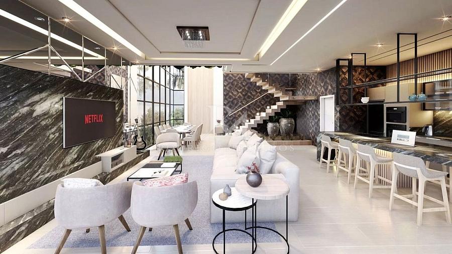 Com 319m² de área construída, o imóvel possui planta funcional e bem distribuída, com três suítes amplas que garantem privacidade e conforto. Os ambientes sociais foram projetados para oferecer integração e amplitude, com living para dois ambientes, cozinha conectada ao espaço gourmet e grandes aberturas que favorecem a entrada de luz natural ao longo do dia.
